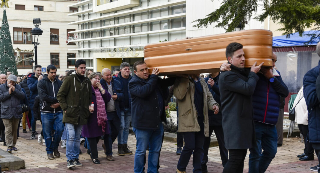 Con la conmoción reflejada en el rostro de sus vecinos, en torno a 200 personas se han congregado a las puertas de la iglesia de San Marcos Evangelista antes de las 11.00 horas. Pasados unos minutos llegaban hasta la plaza Mayor la pompa fúnebre con tres vehículos.