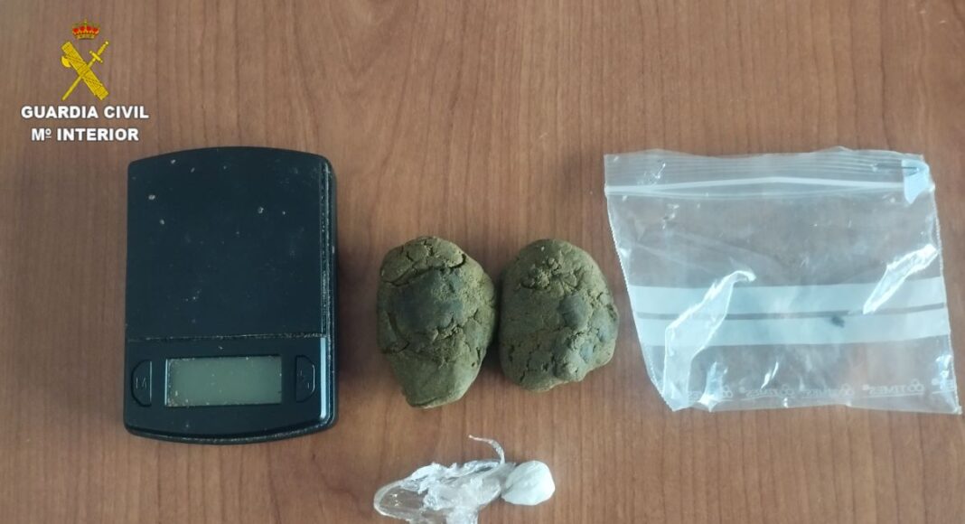 Ante esta situación y el estado de nerviosismo que se encontraba esta persona, se procedía a efectuar un registro del vehículo, descubriendo en el interior dos piedras de hachís con un peso aproximado de 25 gramos, así como una báscula de precisión y un envoltorio de plástico con una dosis individual de 1 gramo de cocaína.