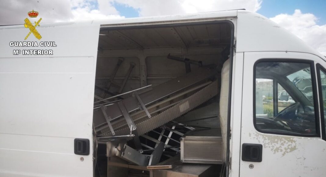 Finalmente, observaron la furgoneta estacionada en un aparcamiento de un supermercado, abandonando el vehículo dos de los ocupantes. Por todo ello, la Guardia Civil comenzó a realizar labores de vigilancia de los alrededores, detectando que la furgoneta emprendió la marcha; logrando ser localizada por los agentes en el interior de la parcela de una empresa.