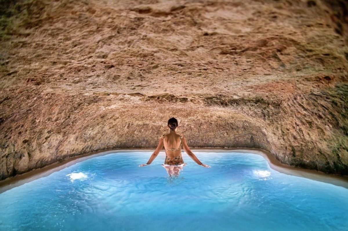 Allí se encuentra una antigua cueva, que en su origen fue un aljibe excavado en piedra, y que hoy alberga una piscina interior climatizada. Este espacio subterráneo, según se describe en su propia página web, es una “experiencia única donde la naturaleza y el relax se fusionan en armonía”. El agua salina, a 33ºC durante todo el año, y el entorno rocoso, convierten el baño en un momento de desconexión total.