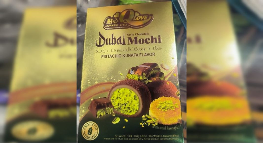 La notificación, trasladada por las autoridades sanitarias de Andalucía, afecta a todos los lotes del producto ‘Dubai mochi pistachio kunafa flavor’ que incluyan en su envase la mención “Gluten free”. Se comercializa en cajas de cartón de 168 gramos por unidad.
