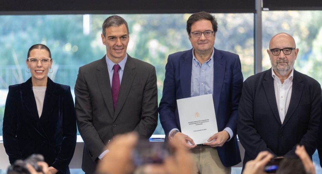 «Con este acuerdo ganan todos los trabajadores y trabajadoras, gana la ciudadanía y, por tanto, creo que gana el país. Hoy es una gran noticia para nuestro país», ha expuesto Sánchez durante el acto de la firma.
