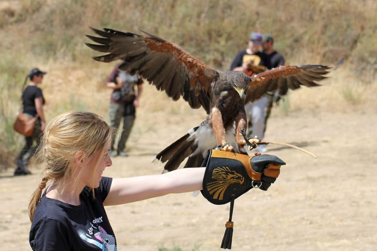 Más allá de los detalles prácticos, lo que realmente engancha es lo que se vive durante la jornada. La actividad comienza con una breve iniciación a la cetrería, donde se aprenden nociones básicas sobre estas aves y su comportamiento. A partir de ahí, llega uno de los momentos más esperados: hacer volar un águila de Harris y recibirla en el propio brazo.