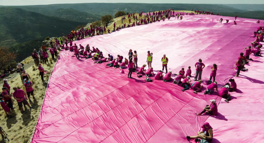 El lazo rosa en las Tetas de Viana logra el Guinness con sus 5.720 m2