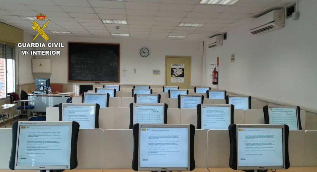 La Guardia Civil ha sorprendido a dos personas en las aulas de exámenes de la Jefatura Provincial de Tráfico utilizando medios técnicos sofisticados, destinados a la adquisición y envío de imágenes y recepción de audio, mediante los cuales otra persona desde el exterior le facilitaba las respuestas en los exámenes teóricos para la obtención del permiso de conducción de la clase B.