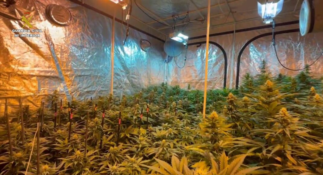 Tras un registro domiciliario, autorizado por el Juzgado de Primera Instancia e Instrucción de Sigüenza (Guadalajara), en una vivienda unifamiliar de la localidad de Sigüenza, se ha desmantelado una plantación de marihuana de interior de alto rendimiento, incautando 1.037 plantas en diferentes estadios de crecimiento. La plantación se distribuía en las tres plantas de la vivienda, con un sistema que aseguraba de manera continua la producción de marihuana.