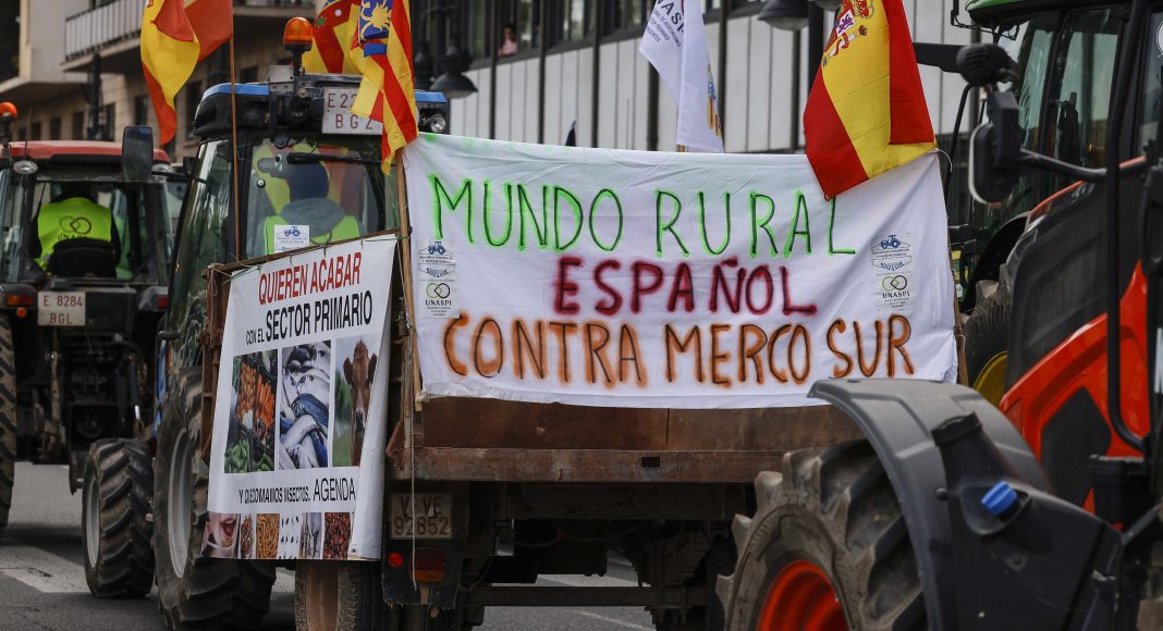 La semana ha estado marcada por distintas protestas en todo el territorio, que tendrán su punto álgido este jueves. Las organizaciones reclaman medidas urgentes que garanticen la rentabilidad de las explotaciones familiares y la supervivencia del mundo rural. “El campo lucha, el Gobierno abandona” o “Paremos el acuerdo de Mercosur. Nuestro futuro está en juego” son algunos de los lemas que han presidido las protestas.