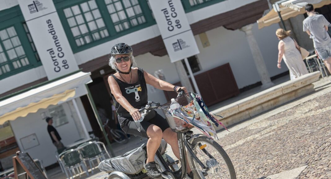 El Festival Internacional de Teatro Clásico de Almagro ha sido la primera parada de la actriz granadina Carmen Ruiz-Mingorance en un tour en bicicleta que pretende reivindicar la importancia de la cultura, y en especial del teatro, en estos tiempos difíciles. El tour Maillot Amarillo la va a llevar por algunos de los más importantes festivales de teatro de nuestro país.