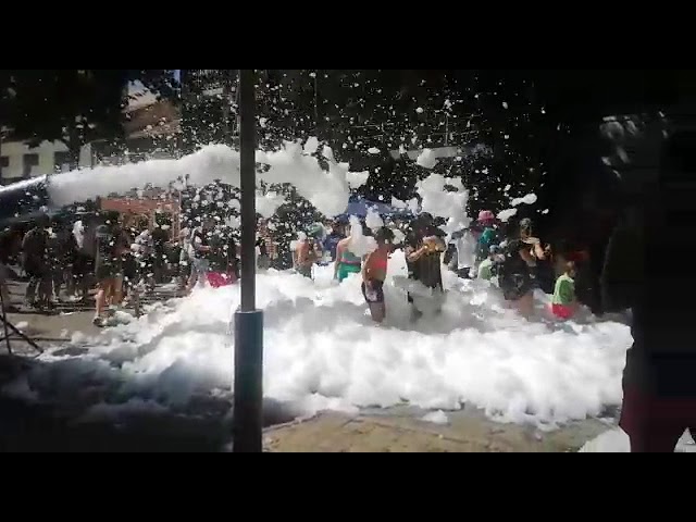 Y tras las paellas, la diversión continuó gracias a la fiesta de la espuma organizada por Llanura, un establecimiento del pueblo especializado en elaborar cerveza artesana.