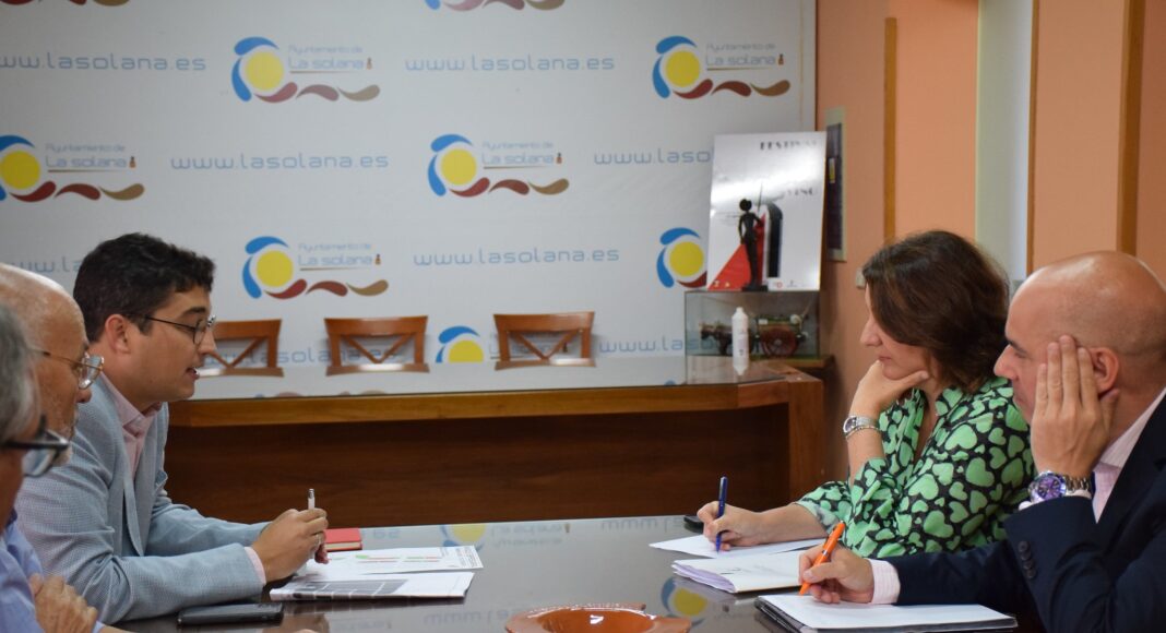 Franco ha mantenido una reunión en el Ayuntamiento de La Solana con su alcalde, Eulalio Díaz-Cano, y parte de su equipo de Gobierno municipal, acompañada por el director general de Empresas, Javier Rosell, y el delegado provincial de Economía, Empresas y Empleo, Agustín Espinosa.
