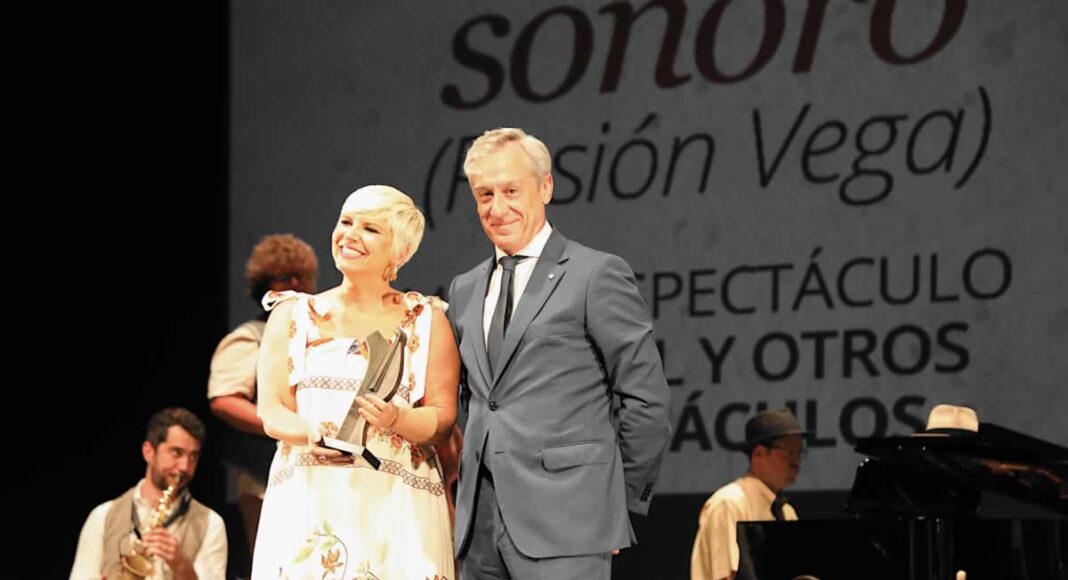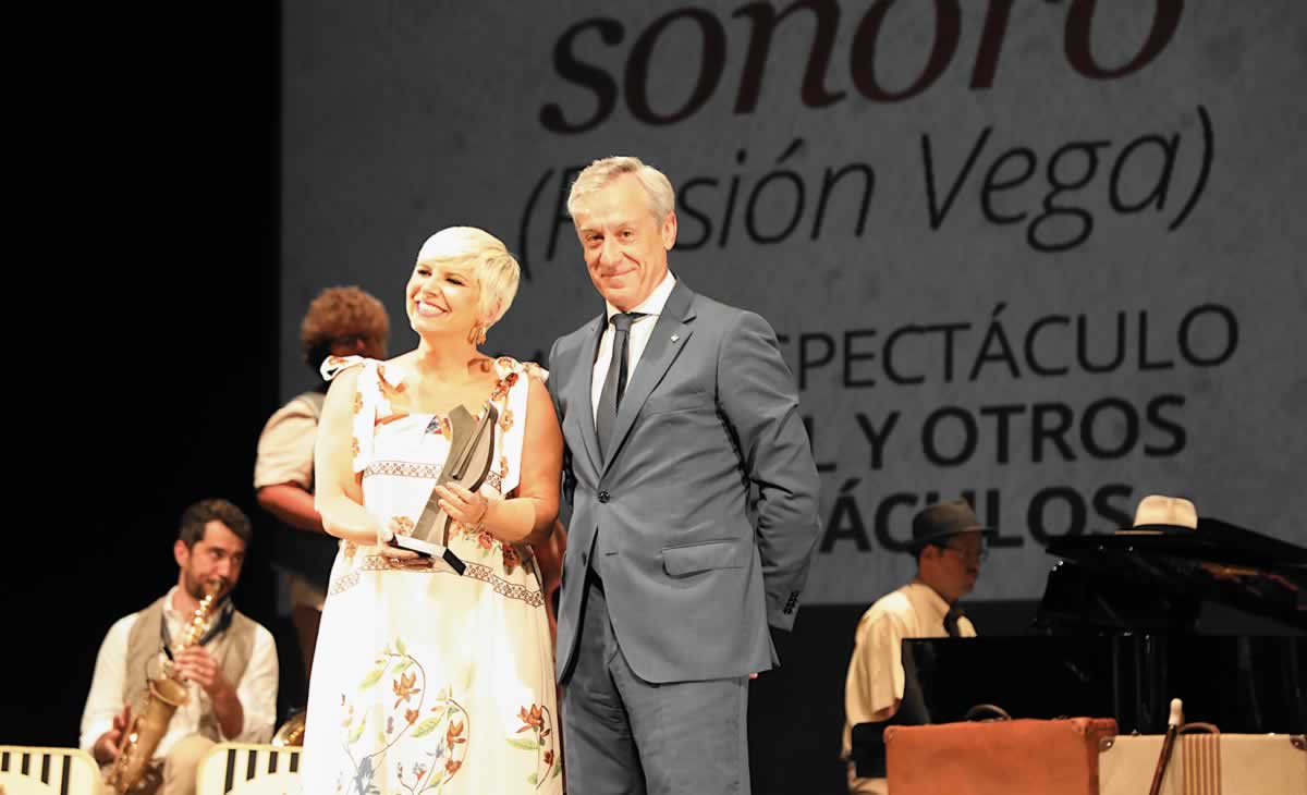 El presidente de Eurocaja Rural, Javier López Martín, entregó el premio a ‘Mejor Musical y Otros Espectáculos’, que ha recaído en ‘Lorca Sonoro’ y que recogió la cantante Pasión Vega. La artista descubre en forma de concierto teatralizado el lado musical de la obra del poeta granadino, recuperando la voz y el mensaje de Federico García Lorca, además de su vitalidad y alegría de vivir.