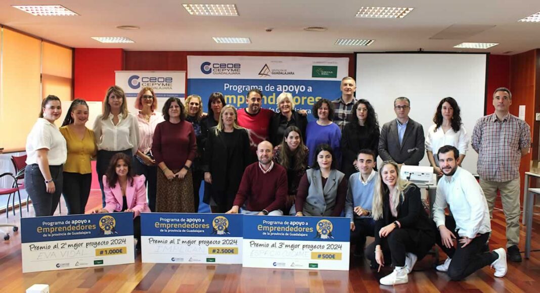 Eurocaja Rural ha participado hoy en el acto de entrega de premios de la VII edición del ‘Programa de Apoyo a Emprendedores de la provincia de Guadalajara’, cuya finalidad es proporcionar a los participantes herramientas e instrumentos que agilicen el proceso de creación y generación de sus proyectos empresariales y modelos de negocios a través de la formación, entrenamiento y acompañamiento.