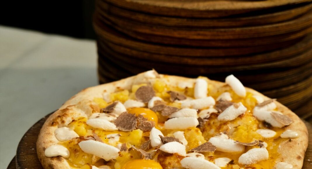La presencia de esta pizza en la carta depende de la disponibilidad de la trufa blanca, cuya temporada de recolección es muy corta y sujeta a condiciones climáticas muy concretas. “El año pasado fue imposible traerla por las lluvias en la zona de recogida, pero este año hemos podido volver a contar con ella”.