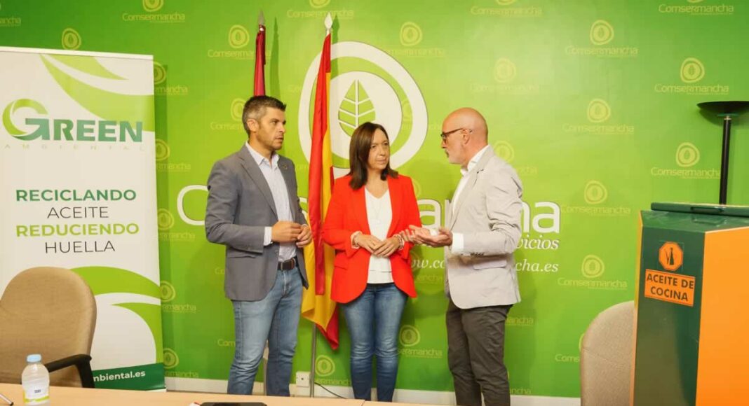 Este lunes, 18 de septiembre, en la sede de la Mancomunidad de Servicios Comsermancha, la presidenta, Rosa Melchor, junto al vicepresidente de la Mancomunidad, Santiago Lázaro, y al representante de Green Ambiental S.L., Antonio Toledo, han presentado el nuevo servicio de recogida de aceite vegetal usado de origen doméstico, una nueva iniciativa que representa un avance trascendental en términos de sostenibilidad ambiental y preservación de la calidad del agua en la comarca.