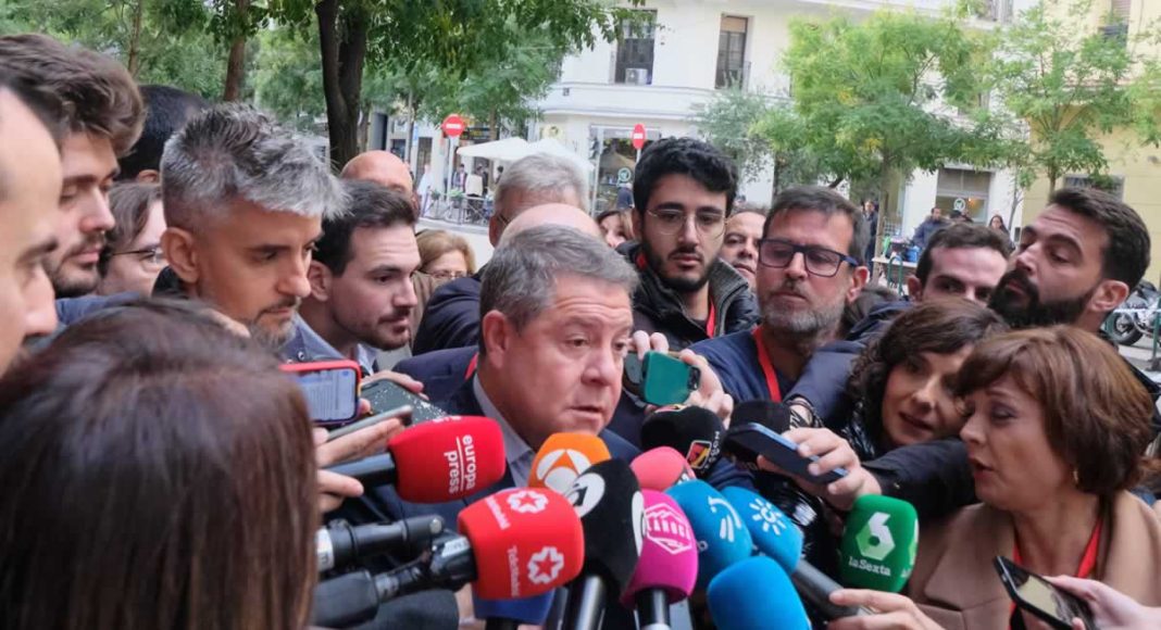 El secretario general del PSOE de Castilla-La Mancha, Emiliano García-Page, a su llegada a Ferraz para participar en el Comité Federal del PSOE, ha atendido a los medios para volver a fijar su postura ante una hipotética amnistía a condenados por el ‘procés’ en Cataluña, rechazándola de plano y abundando en que aunque pudiera caber en la Constitución, es un extremo que «no casa con los valores del PSOE».