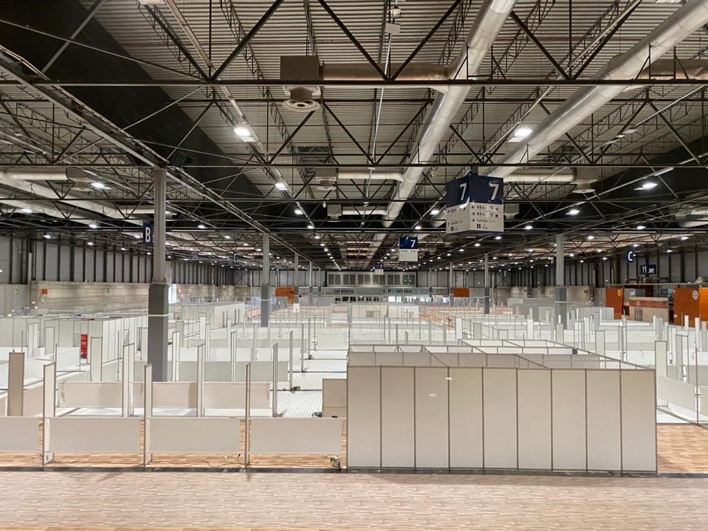 En este punto ha explicado por ejemplo que en el pabellón 9, con 21.000 metros cuadrados, tienen capacidad para instalar 50 camas «bastante separadas» por módulos y que en esa superficie se habilitarán 750 camas y 64 de UCI.