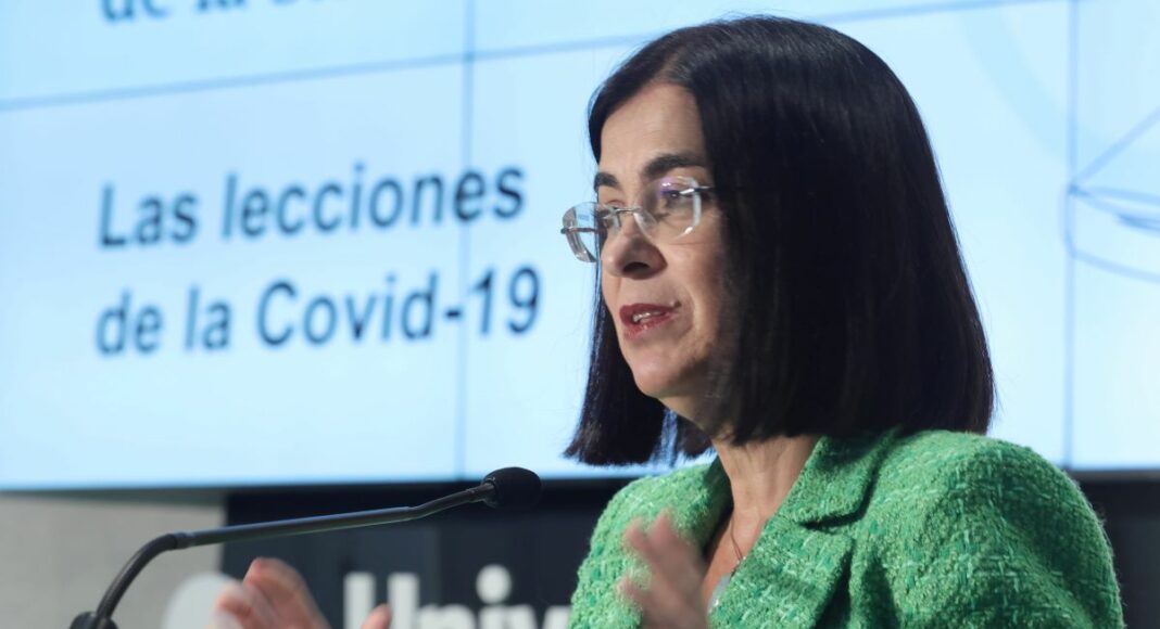 La ministra ha puesto en valor, durante la apertura del II Simposio del Observatorio de la Sanidad ‘Las lecciones de la Covid-19’ organizado por EL ESPAÑOL e Invertia, las «lecciones de la pandemia». Y, entre ellas, «ha permitido reafirmar el enorme valor de lo público, a la vez que hemos asumido la necesidad de reforzar y ampliar nuestro Sistema Nacional de Salud».