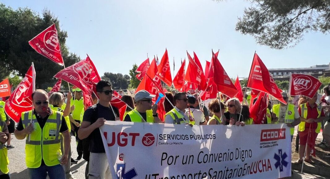 La Consejería de Sanidad de Castilla-La Mancha ha establecido los servicios mínimos para la huelga parcial y de ámbito regional convocada por los trabajadores de las empresas concesionarias del servicio de transporte sanitario —UTE Ambulancias Cuenca, Digamar Servicios SL y José María San Román Gómez-Menor SL— para los días 16, 17 y 18 de junio. La protesta afectará al servicio prestado al Servicio de Salud de Castilla-La Mancha (SESCAM) en las cinco provincias de la región.