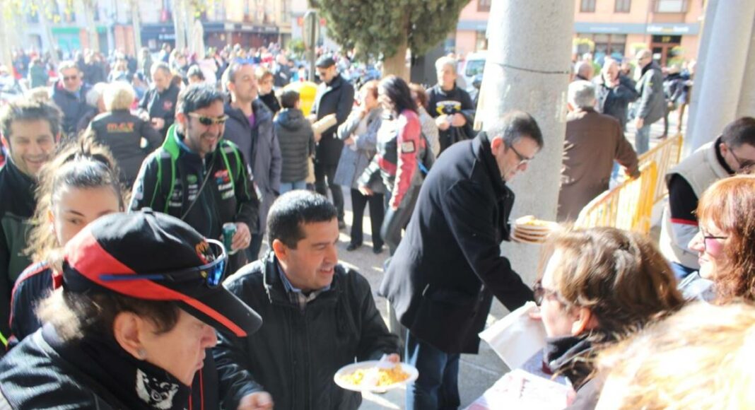 Alrededor de 800 platos de migas se distribuyeron en las VII Migas Solidarias del Motoclub Torrijos, celebradas el domingo en la Plaza de España de la localidad a beneficio de ATORDEM (Asociación Torrijeña de Esclerosis Múltiple).