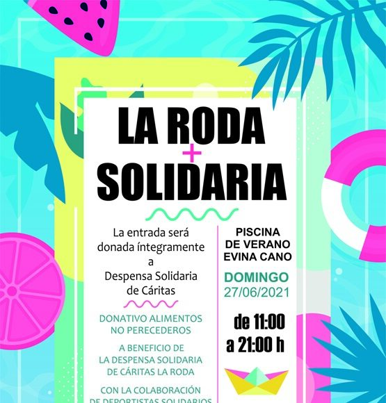 La campaña ‘La Roda+Solidaria’ se desarrollará este domingo, día 27, en la piscina de verano ‘Evina Cano’, con el objetivo de destinar toda la recaudación de esa jornada a la Despensa Solidaria de Cáritas. Además, toda aquella persona que lo desee podrá entregar alimentos no perecederos y productos de higiene a lo largo del día.