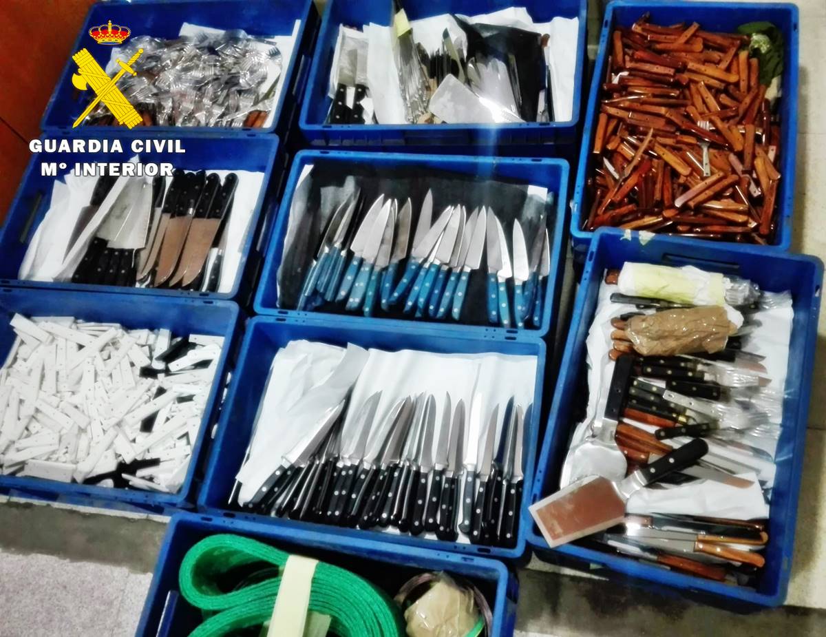 En cada unos de los robos, el ahora detenido sustraía pequeñas cantidades, tanto de cuchillos como de elementos para su montaje, pasando a sustraer la maquinaria necesaria para realizar los trabajos pulido y afilado, y que más tarde intervino la Guardia Civil en el sótano de su vivienda.