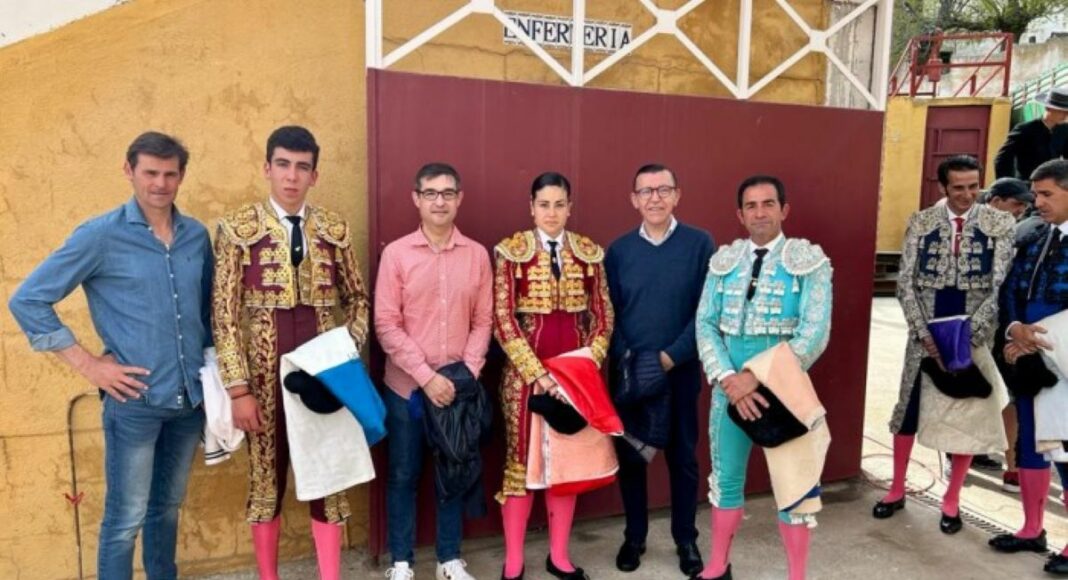 El vicepresidente de Asuntos Generales, Empleo, Deportes y Promoción Turística de la Diputación de Toledo, Fernando Muñoz, mostraba ayer el apoyo de la Diputación de Toledo a Estrella Magán y Óscar Dasilva, alumna y alumno de la Escuela Taurina “Domingo Ortega”, que participaban en el primer festejo de la VII edición del Certamen de novilladas sin picadores “Promesas de nuestra tierra”.
