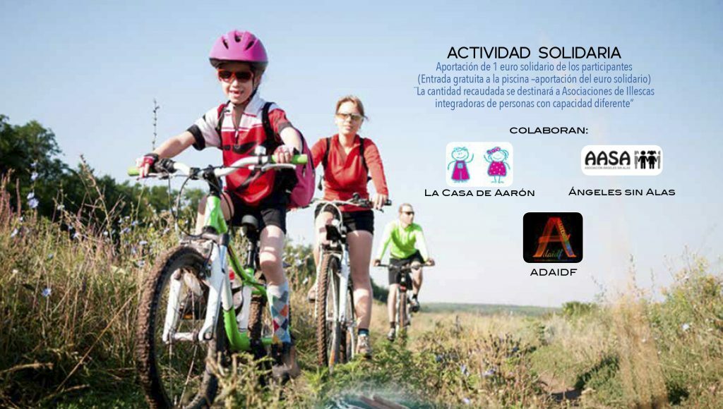 Dentro de la programación de las Fiestas Patronales de Illescas, se incluye una cita a celebrar este domingo, 27 de agosto: la Fiesta Solidaria del Deporte. A las diez de la mañana comenzará un recorrido en bicicleta por las calles de la localidad, con salida desde el Complejo Polideportivo del Parque y llegada en el Complejo Deportivo Piscinas Nuevo Toledo. Una hora más tarde, se realizará un circuito MTB para menores de 16 años, junto a las pistas de tenis y pádel del complejo de piscinas municipal.