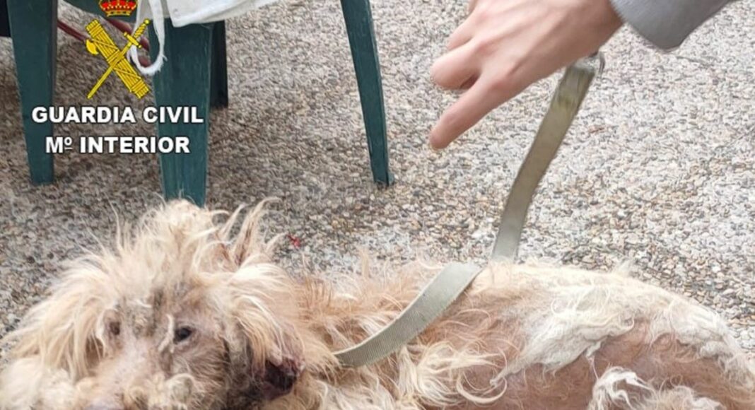 Los guardias civiles examinaron al perro, comprobando que presentaba varias laceraciones y heridas en la piel, una gran pérdida del pelo del cuerpo e infestación por parásitos. Además, no portaba ningún tipo de elemento microchip de identificación, sin pasaporte sanitario ni vacunas contra la rabia o la desparasitación obligatorias.