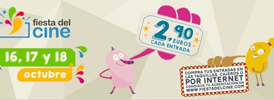 La decimotercera edición de la Fiesta del Cine se celebrará en toda España los próximos 16, 17 y 18 de octubre. Durante esos tres días (lunes, martes y miércoles) se podrá acceder a las salas adheridas a la promoción al precio de 2,90 euros cada entrada, mostrando la acreditación en el cine, según precisan sus impulsores.