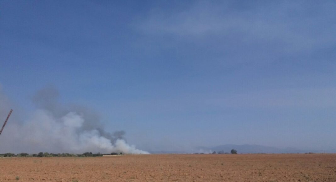 El incendio se declaraba a las 9.30 horas este jueves en una extensión de monte bajo, de arbolado y pasto, en lo que es el camino entre La Pueblanueva y Talavera de la Reina, por lo que la columna de humo era visible desde la ‘Ciudad de la Cerámica’.