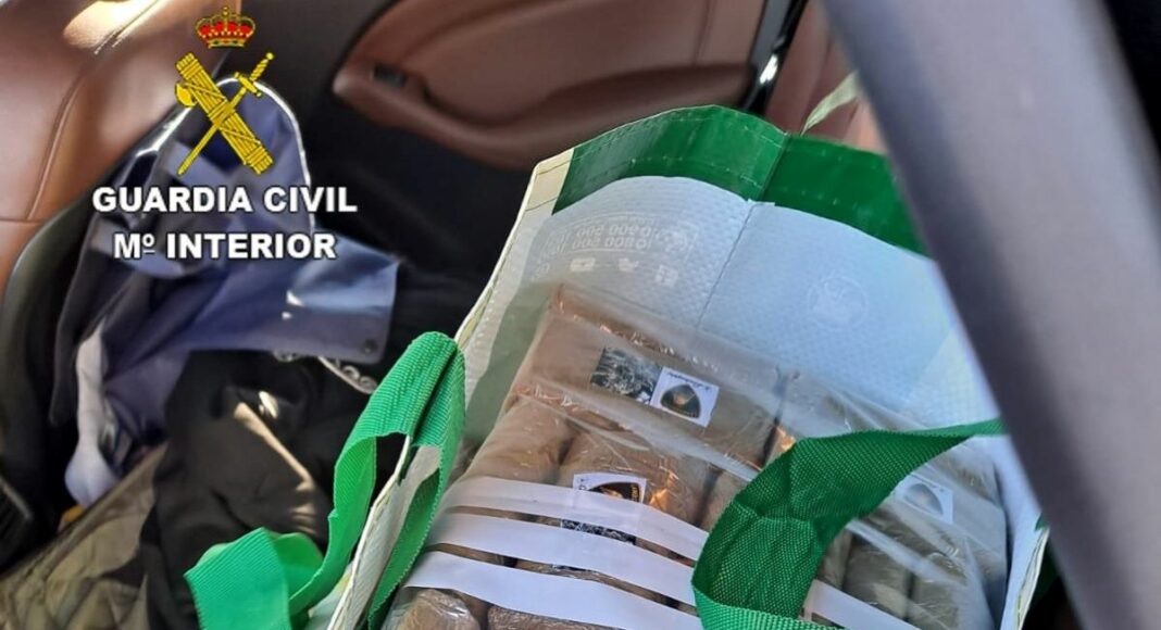 Mientras que el conductor y único ocupante del vehículo era identificado, el perro marcó varias bolsas de supermercado en los asientos traseros como posibles puntos donde pudiese encontrase algún tipo de droga. Allí, los guardias civiles hallaron un total de 420 paquetes envueltos con una sustancia marrón en su interior, concretamente hachís, que arrojaron un peso exacto de 46,7 kilogramos.