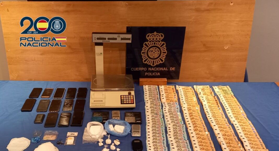 Además, se incautaron 7.000 euros en metálico, doce teléfonos móviles, un vehículo, útiles para la manipulación de la droga y básculas de precisión en todos los domicilios.