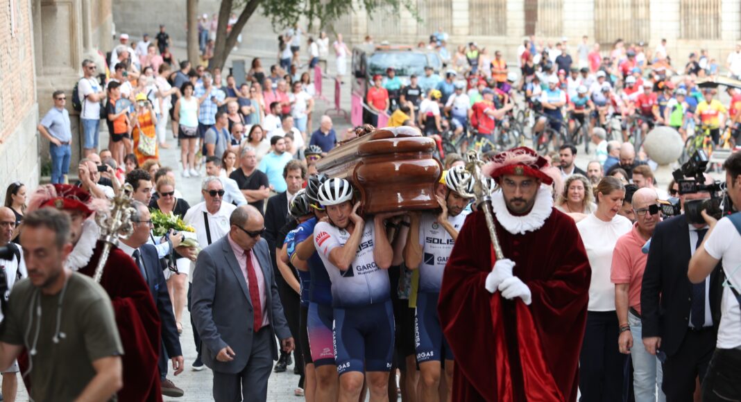 «Recibimos, por última vez, al Águila de Toledo, exactamente igual que aquel mes de julio de 1959, cuando Federico Martín Bahamontes, primer vencedor del Tour de Francia, atravesaba esta Puerta de Bisagra para recibir el agradecimiento, el aplauso y el reconocimiento de toda la ciudad. Hoy, en esa última etapa que recorre hasta lo más alto, también le recibe Toledo, un recibimiento a la altura de una leyenda», ha aseverado Velázquez.